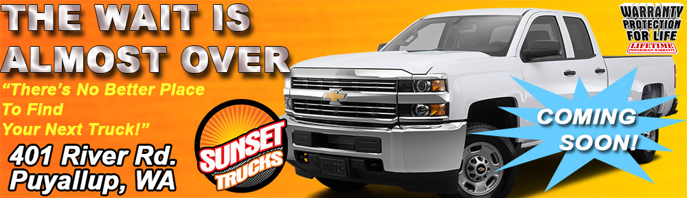 The wait is almost over! For nearly 100 years, Sunset Chevrolet has been the place to go for amazing selection, price and service in Sumner. We are proud to continue this tradition with the opening of Sunset Trucks in Puyallup!